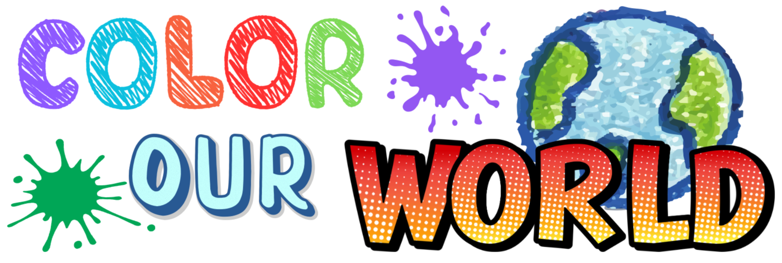 The text 'Color Our World' written is crayon text and with comic style